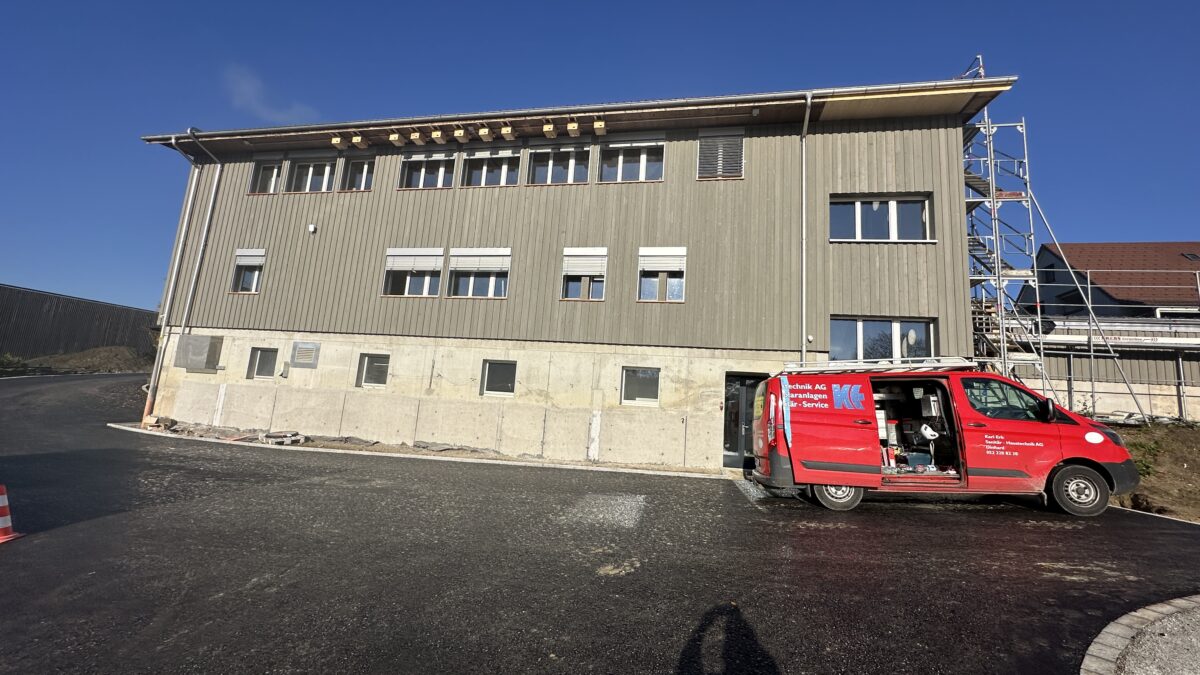 Nachdem in Etappe 2 der Materialunterstand für die Fachbereiche fertiggestellt wurde, konnten wir mit dem Umbau der Remise beginnen. Im Sommer starteten wir mit dem Anbau des Liftes und des Treppenhauses sowie mit den Arbeiten im Inneren. Neue Fenster bringen mehr Tageslicht, und die Räume werden besser isoliert. Die Heizung sorgt dafür, dass die Mitarbeitenden in einem angenehmen Umfeld arbeiten können. Die Remise wurde deutlich heller und einladender als früher.